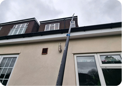 Safe and effective gutter cleaning using a high-reach vacuum system.